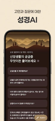 성경AI 기능을 통해 어디에도 없는 신앙질문과 AI 해설을 제공합니다. 예수님과 베드로가 처음 만난 곳? 구약 율법의 현대 적용? 등 물어보기 어려운 신앙, 신학 질문도 AI가 말씀에 근거해 답변해줍니다.