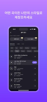 음악 배경 지식 불필요—몇 번의 클릭만으로 가사와 멜로디를 완성. 모두가 뮤지션이 될 수 있습니다!