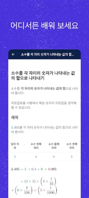 칸아카데미는 여러분의 학습을 돕기 위해 다양한 기능을 제공합니다. 연습 문제, 퀴즈, 시험을 풀어 보고 즉각적인 피드백과 단계별 힌트를 얻을 수 있습니다. 학교에서 하는 진도와 함께 하거나 원하는 속도로 연습할 수 있습니다. 또한 북마크에 추가하고 다운로드해 여러분이 좋아하는 동영상을 인터넷 연결 없이도 볼 수 있습니다. 멈추었던 곳에서 다시 시작할 수 있도록 여러분의 학습 내용은 항상 최신으로 유지됩니다.