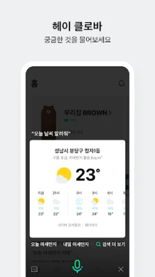 🍀 클로바 앱은 다양한 테마의 명령어를 제공하여 사용자들이 쉽고 빠르게 원하는 정보를 얻을 수 있도록 도와줍니다. 시간과 상황에 맞는 음악 추천, 키즈탭, 음성 명령, 스마트한 일상, 즐거운 일상을 위한 시작 등 다양한 기능을 제공하며, 사용자들의 일상을 더욱 편리하고 즐겁게 만들어줍니다. 클로바 앱을 통해 날씨, 번역, 리마인더, 검색 등 일상에서 필요한 기능을 '헤이 클로바' 한 마디로 간편하게 실행해보세요. 또한, 클로바 앱은 사용자들의 일상을 더욱 스마트하게 만들어주는 기능들을 제공합니다. IoT 기기의 동작을 예약하거나, 여러 기기를 한 번에 제어할 수 있으며, 내 명령어를 설정하여 말 한마디에 조명을 켜고, 음악을 듣고, 블라인드를 내리는 등 여러 동작을 한 번에 실행할 수 있습니다. 또한, 리마인더, 메모, 알람, 타이머를 확인할 수 있으며, 학급 알림장, 캘린더 연동 등 다양한 세부 기능들이 준비되어 있습니다. 클로바 앱은 사용자들의 일상을 더욱 즐겁게 만들어주는 다양한 기능들을 제공합니다. 또한, 클로바 앱은 사용자들의 일상을 더욱 편리하게 만들어주기 위해 필수 접근권한을 요구합니다. 위치, 마이크, 전화, 파일 및 미디어, 카메라, 블루투스, 알림 등의 접근권한을 요구하며, 이를 통해 사용자들의 일상을 더욱 편리하고 즐겁게 만들어줍니다. 클로바 앱을 통해 더욱 편리하고 즐거운 일상을 시작해보세요! 🍀