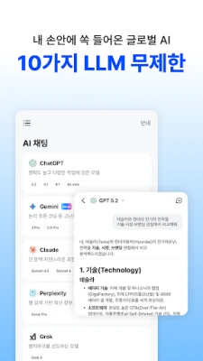2. AI 채팅 기능 이 기능은 다양한 글로벌 AI 모델과 대화할 수 있는 환경을 제공합니다. 사용자는 인공지능과의 상호작용을 통해 궁금증을 해결하고 아이디어를 발전시킬 수 있습니다.