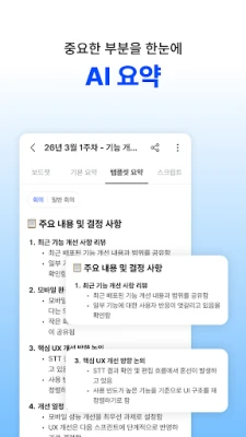 1. AI 기록관리 기능 이 기능은 음성, 영상, 문서 등 다양한 형태의 기록을 인공지능 기술을 활용하여 텍스트로 정확하게 변환하고 체계적으로 정리해줍니다.