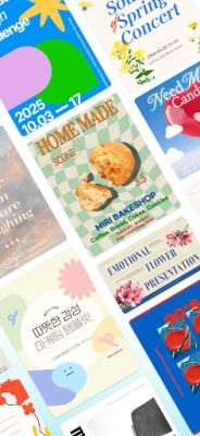 🎨 다양한 종류의 템플릿을 활용하여 포스터, 소셜 미디어 포스트(SNS), 프레젠테이션 등을 쉽게 작성할 수 있어요. 디자인 전문가가 만든 1350만 개의 풍부한 템플릿과 요소들을 자유롭게 사용할 수 있어요. 모바일 기기에 있는 사진을 통해 나만의 디자인을 완성할 수 있어요. 강력한 편집 기능을 통해 이미지, 텍스트, 그래픽 등을 자유롭게 조합하여 원하는 디자인을 쉽게 만들 수 있어요. 제작한 디자인을 바로 상품 제작까지 한번에 가능해요.