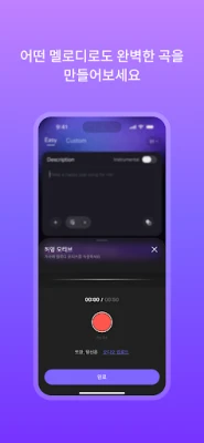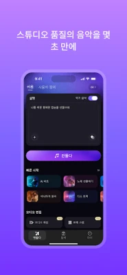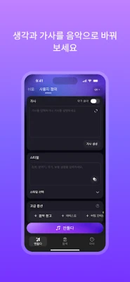 음악 배경 지식 불필요—몇 번의 클릭만으로 가사와 멜로디를 완성. 모두가 뮤지션이 될 수 있습니다!