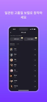 사전 제작된 AI 보컬리스트 중 선택하거나 어떤 목소리든 클론—성별, 음색, 캐릭터를 설정해 당신만의 시그니처 사운드를 디자인하세요.