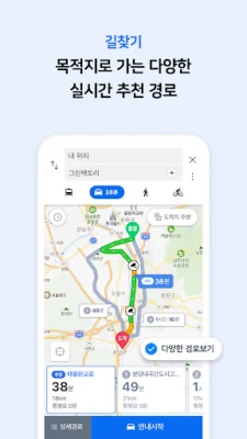 다양한 대중교통 길찾기 결과를 확인하고, 실시간 도착정보와 승하차 안내 기능으로 쉽고 편리하게 목적지까지 갈 수 있어요.
