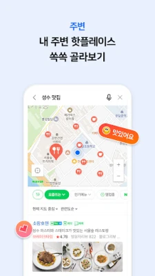 네이버 사용자 데이터를 기반으로 제공하는 내 주변의 맛집, 가볼만한 곳 정보를 확인 할 수 있어요.