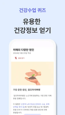 치매 위험도 검사(치매체크)로 내 잠재적 위험 요인을 확인하고, 맞춤 코스 활동을 하며 두뇌의 다섯 가지 영역을 골고루 자극하세요.