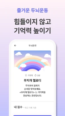 AI가 내 레벨을 파악해서 수준에 딱 맞는 레벨로 게임처럼 재미있는 두뇌 트레이닝을 제공합니다. 힘들이지 않아도 자연스레 좋아지는 뇌 건강을 경험하세요.